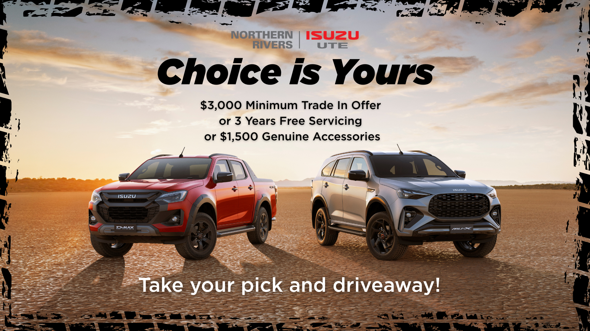 Now's the perfect time to upgrade your drive with an unbeatable offer from Northern Rivers Isuzu UTE. Whether you're after rugged performance or family-ready comfort, the Isuzu D-MAX and MU-X are ready for anything – and so is this deal*. We’re giving you the freedom to choose a bonus that best suits your lifestyle: